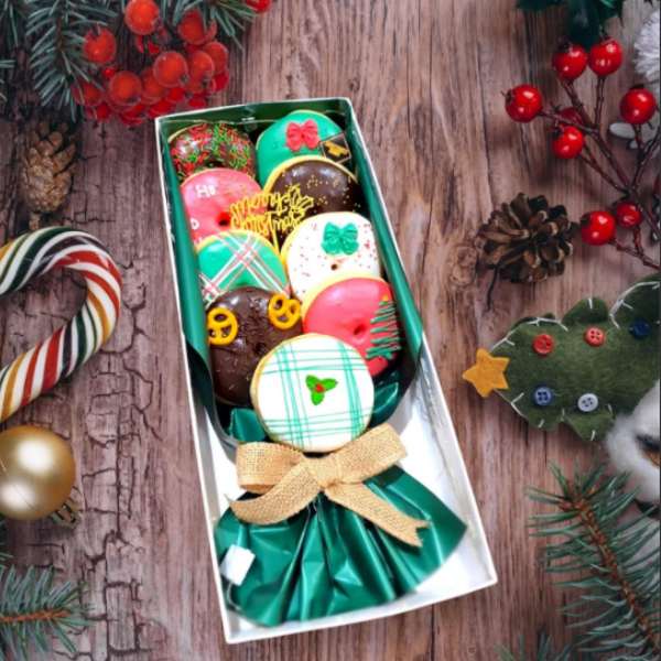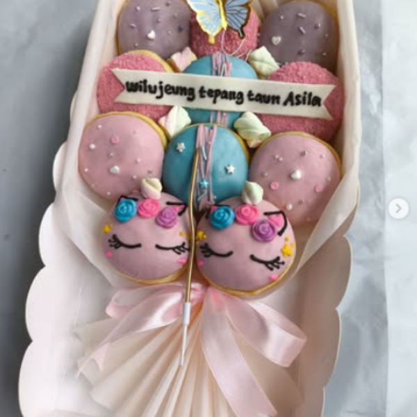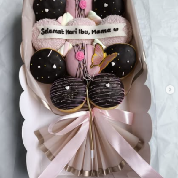 Bouquet Donat Mini – Hadiah Manis untuk SahabatSusunan 10 donat mini menyerupai buket hadiah mungil. Cocok untuk sahabat, anak-anak, atau kejutan sederhana yang tetap berkesan.